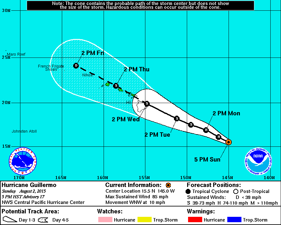 AS GUILLERMO MOVES CLOSER TO HAWAII…WATCHES MAY BE ISSUED AS