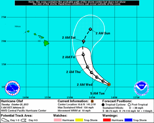 AT 500 AM HST...1500 UTC...THE CENTER OF HURRICANE OLAF WAS LOCATED